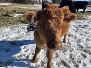 During the 2021 fall calving season, we lost a cow to a prolapse that could not be cured, orphaning her daughter. Again, we didn’t have another cow to adopt her, and so this little heifer became our third bottle calf.